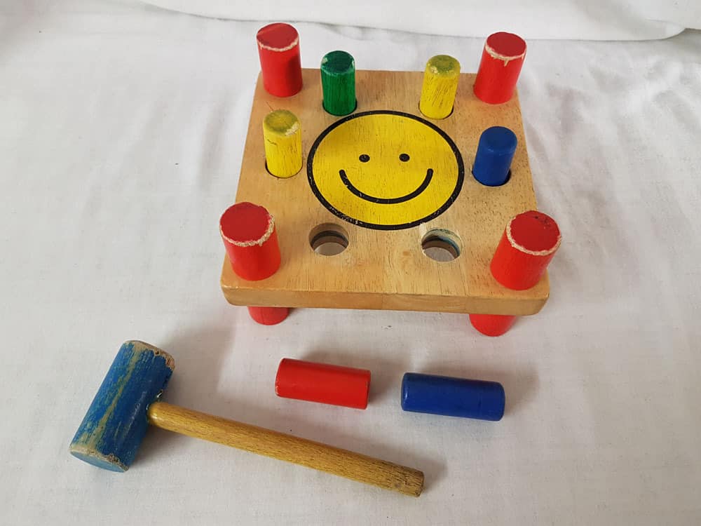 1 x Wooden base 6 x wooden pegs 1 x wooden hammer