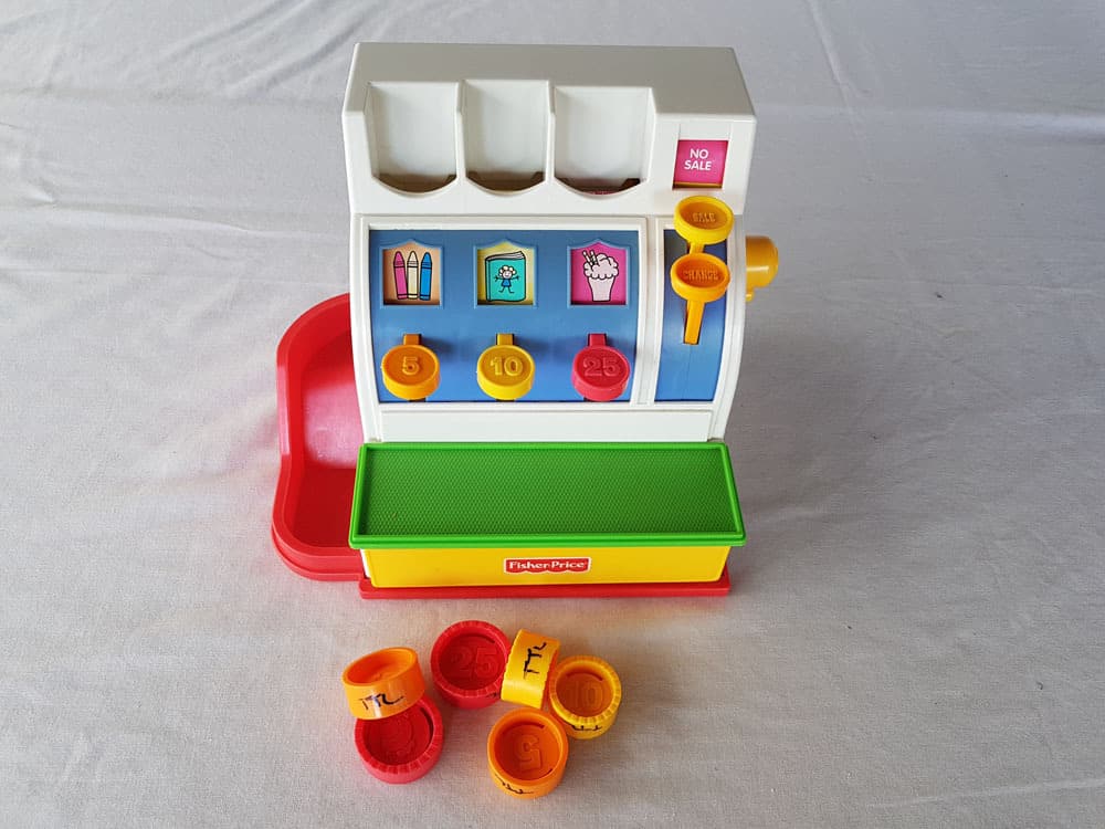 Inspired by the classic 1975 toy, the Fisher-Price Cash Register helps teach your child counting, numbers and colors.