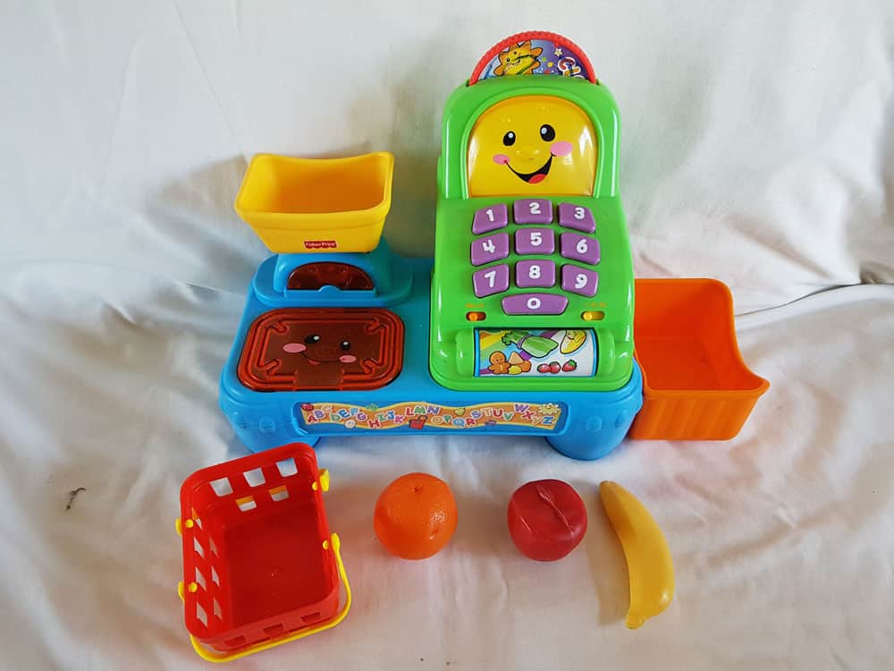 With more than 15 sung songs, tunes, and cute sound effects baby will love learning and playing with the Laugh and Learn Magic Scan Market.