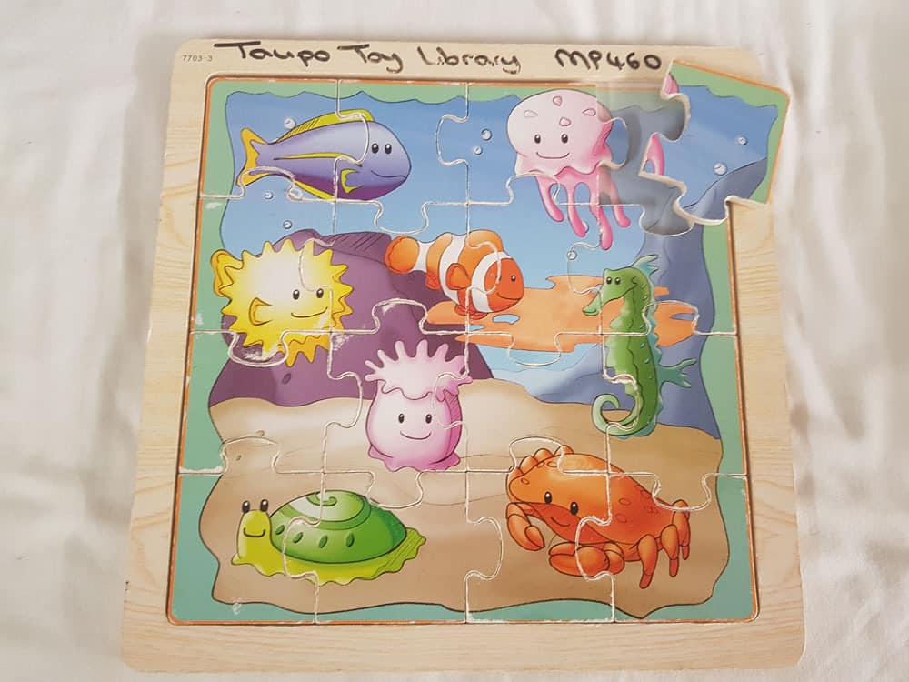16 piece wooden sea life puzzle.