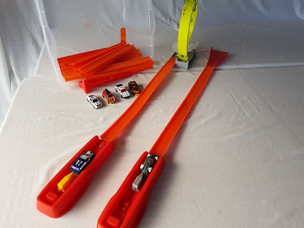 6 x hot wheels cars Slasher circle (4 pieces) 2 x launchers 35 x tracks and connectors