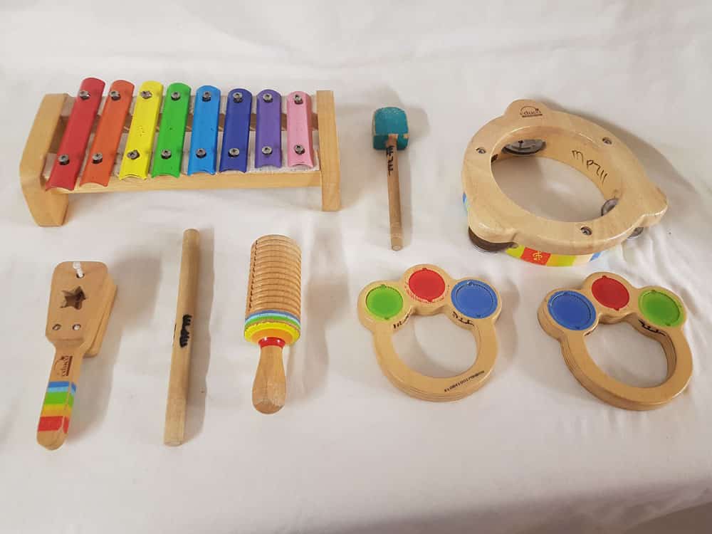 A perfect set of 6 wooden instruments for a child’s first experience in music.