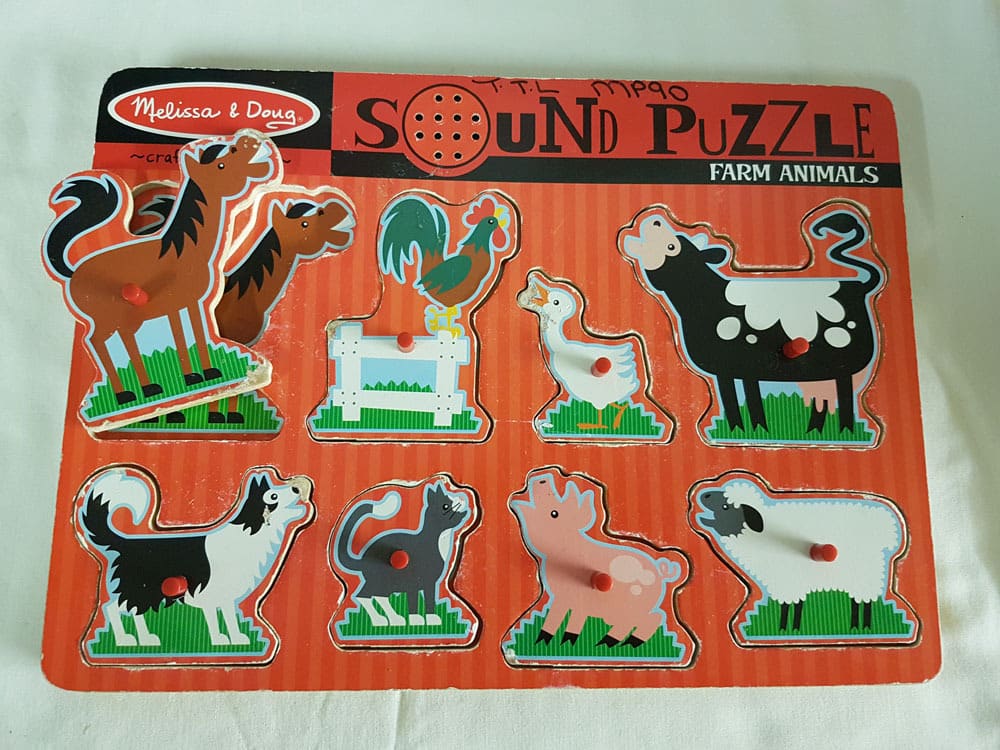Tags: animal, sound, puzzle, tray, wood